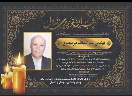 از شنیدن خبر درگذشت مهندس سید اسدالله میرسعیدی، غمی عمیق قلب ما را فرا گرفت; فقدانی که هیچ تسکینی برای آن وجود ندارد و جای خالی ایشان در دل خانواده، دوستان و خانواده بزرگ دانشگاه علوم پزشکی تهران برای همیشه احساس خواهد شد.
